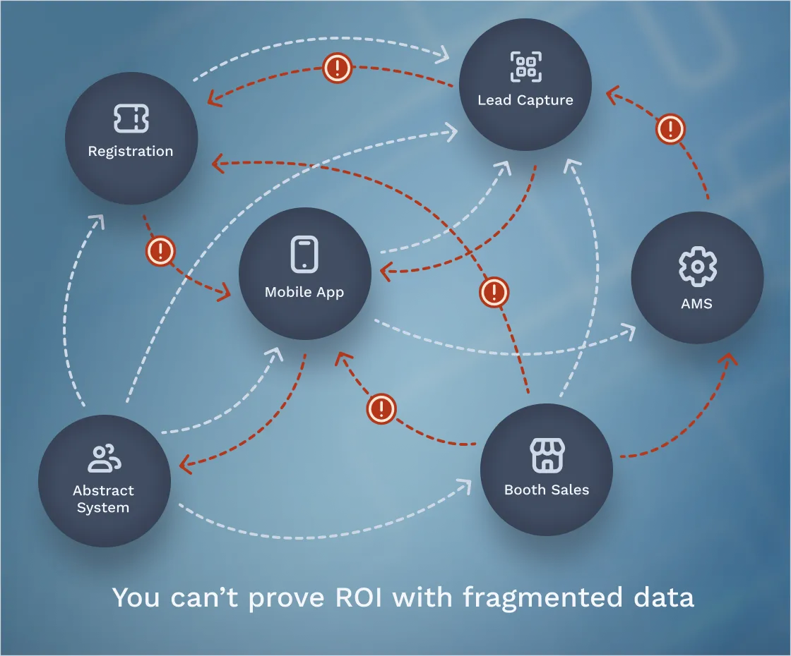 No single source of truth means attendance, session engagement, exhibitor performance are all inconsistent across tools.